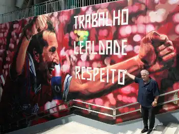 ジーコ氏の巨大壁画がお披露目 カシマスタジアムの熱量向上を