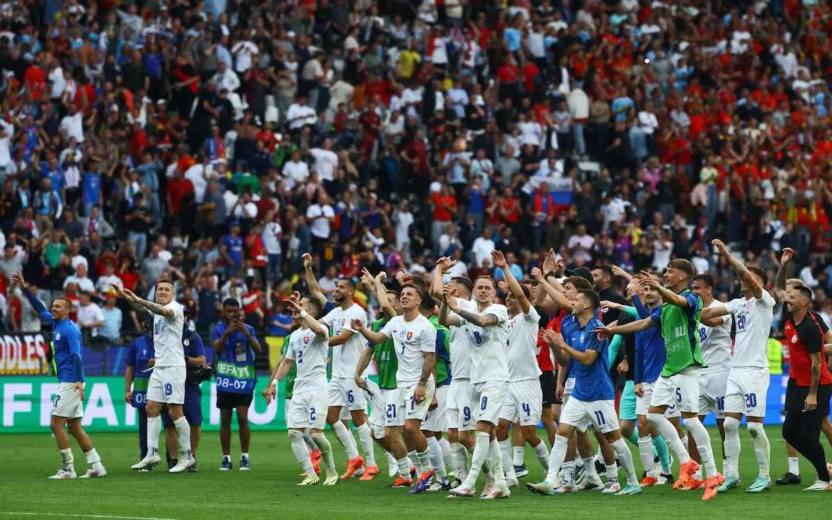 <欧州選手権 ベルギー・スロバキア>前半、FWルカク(左から3人目)を徹底マークするスロバキア代表イレブン(ロイター) 【欧州選手権】スロバキアが“V候補”ベルギーから金星! VAR判定にも救われ… ギャラリーで見る この記事のフォト 2024年06月18日の画像一覧 もっと見る 2024年06月18日の画像をもっと見る