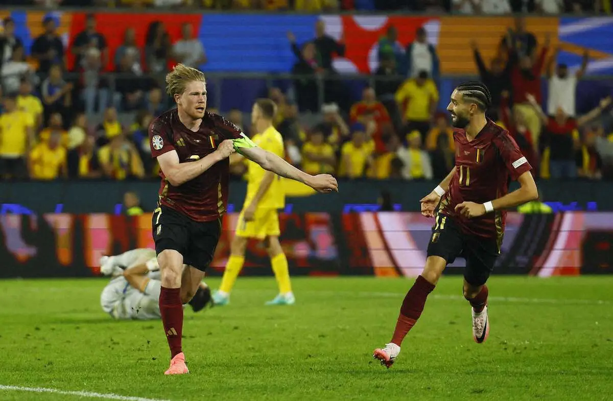サッカーの24年欧州選手権(EURO)ドイツ大会1次リーグ第2戦、ベルギーがルーマニアに2―0と勝利。攻撃陣をけん引したMFケビン・デブルイネ(32=マンチェスターC)が後半19分にゴールを決めるなど活躍。E組は1勝1敗の勝ち点3で4チームが並ぶ大混戦に。26日の第3戦ではウクライナと決勝トーナメント進出を懸け対戦することになった。