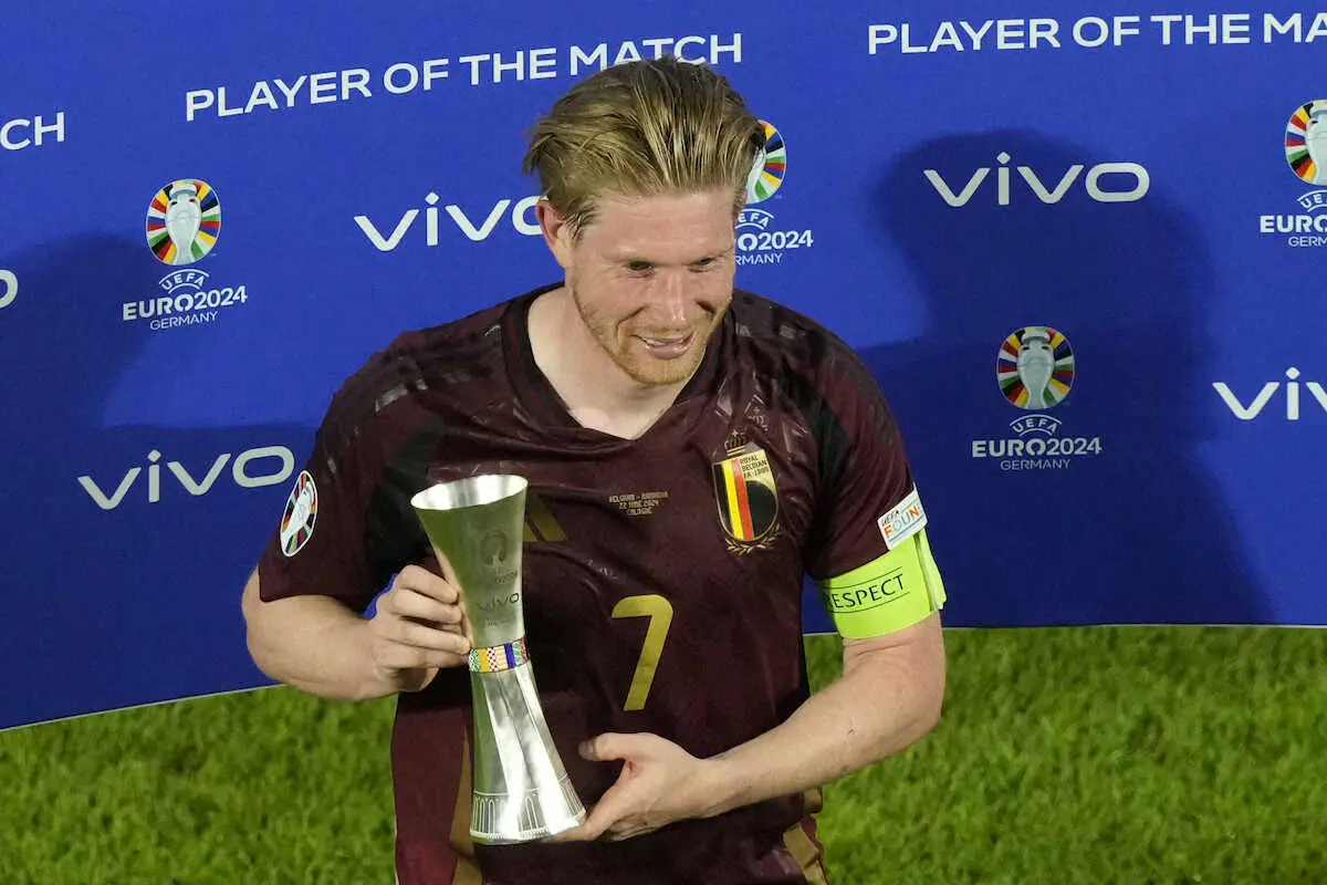 <欧州選手権 ベルギー・ルーマニア>この試合のマン・オブ・ザ・マッチ(MOM)に選出されたベルギー代表デブルイネ(AP)