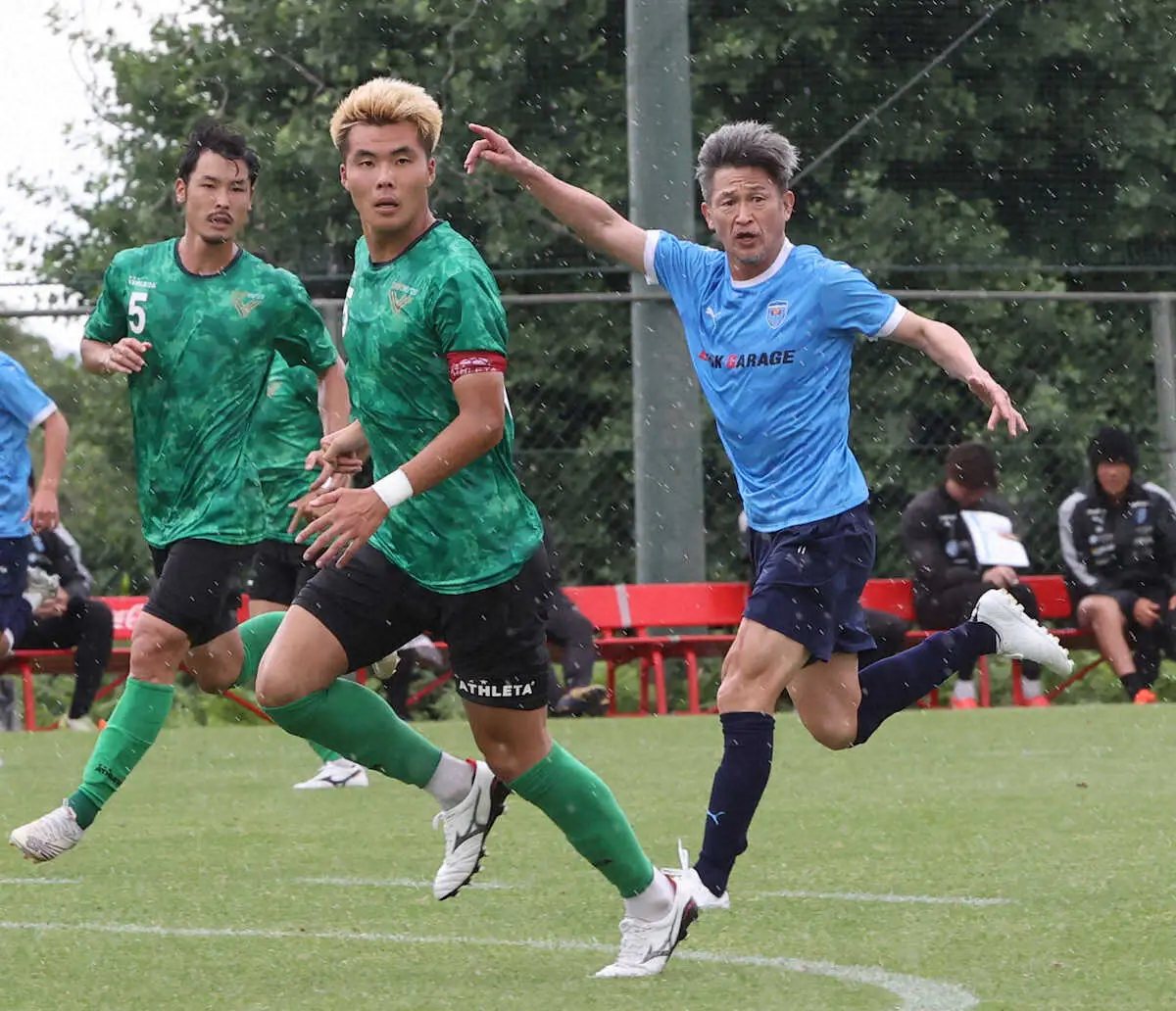 実戦は5月19日のポルトガル2部最終戦で31分間プレーして以来。「(大阪で)しっかり自主トレしていたので思ったよりできた」と満足そう。異例の参加は、カズが横浜FCに「10分でもいいから出たい」と頼んで実現。カズの姿に驚いたサポーターからは大歓声も湧きおこった。