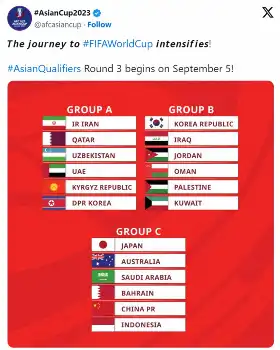 今回からアジアの本大会出場枠が4・5→8・5に増加。9月開幕の最終予選は18チームが3組に分かれホーム&アウェーで争われ、各組2位までが出場権を獲得。3、4位の計6チームが2組に分かれてアジア・プレーオフを戦い、各1位がW杯出場を勝ち取り、2位同士のアジア9位決定戦を制したチームが大陸間プレーオフに進む。