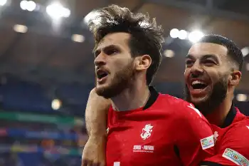 サッカーの24年欧州選手権(EURO)ドイツ大会1次リーグ第3戦、世界ランク74位のジョージアが同6位ポルトガルを2―0で撃破。初出場ながら優勝候補の一角から歴史的初勝利となる金星を挙げ、決勝トーナメント進出も決める快挙を達成。FWクバラツヘリア(23=ナポリ)が前半2分に先制ゴールを決める活躍を見せ、マン・オブ・ザ・マッチ(MOM)に選出された。
