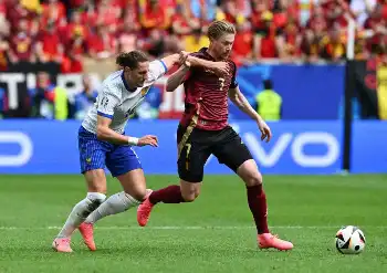 試合は立ち上がりから慎重に入り、フランスに攻め込まれながらもほとんど決定機を作らせず。前半25分にはデブルイネ(マンチェスターC)がフリーキックから相手ゴールを脅かしたが、0―0のまま前半を終えた。
