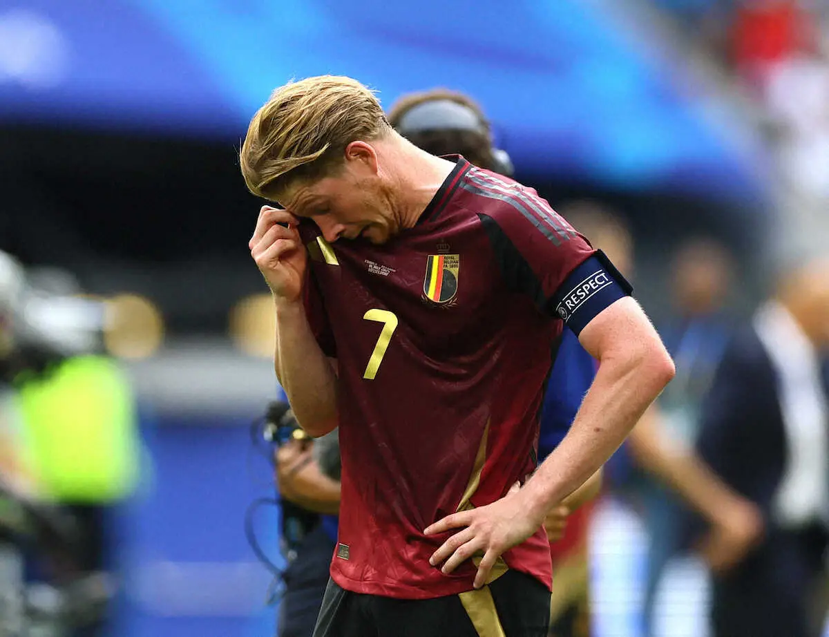 <欧州選手権 フランス・ベルギー>敗退が決まり落胆するベルギー代表デブルイネ(ロイター)