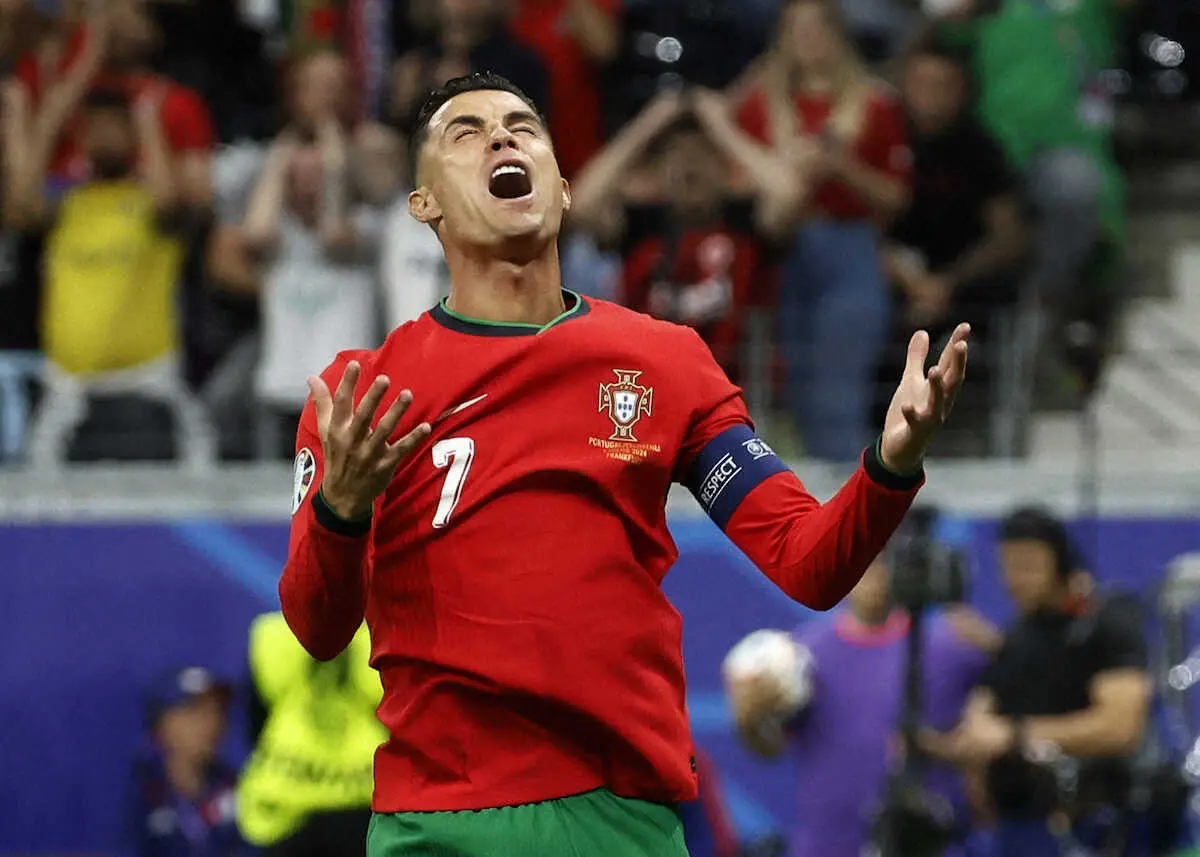 <欧州選手権 ポルトガル・スロベニア>延長前半、PK失敗で涙を流すC・ロナウド(右)をなぐさめるポルトガル代表B・フェルナンデス(中央)(ロイター) ポルトガル 激闘PK戦制しEURO2大会ぶり8強進出!C・ロナウド涙のPK失敗乗… ギャラリーで見る この記事のフォト 2024年07月02日の画像一覧 もっと見る 2024年07月02日の画像をもっと見る