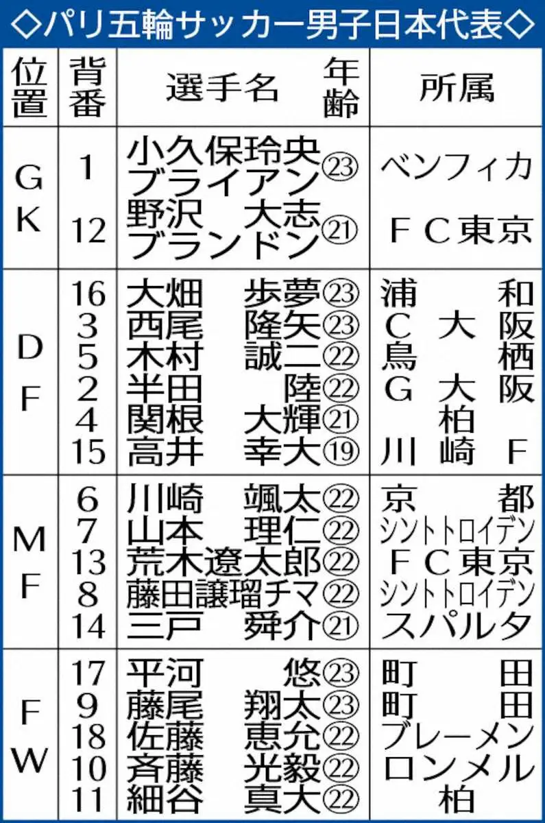 パリ五輪サッカー男子日本代表