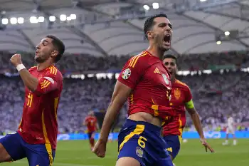 サッカーの24年欧州選手権(EURO)ドイツ大会は5日、スペインが準々決勝で開催国ドイツとの延長戦にまでもつれた激戦を2―1で勝利。1―1で迎えた延長後半14分にMFミケル・メリーノ(Rソシエダード)が決勝ゴールを決め、2大会連続ベスト4進出を果たした。