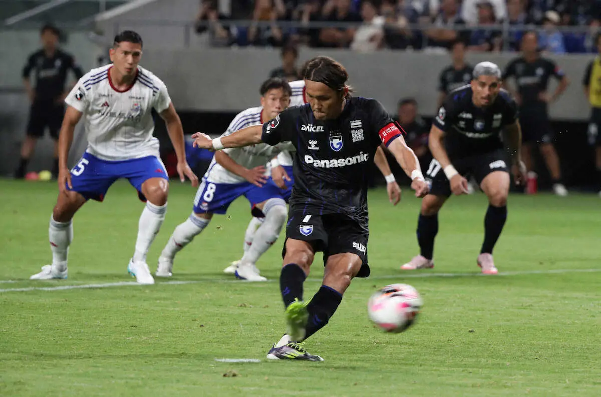 <G大阪・横浜>後半、PKを宇佐美が決める(撮影・長嶋 久樹)