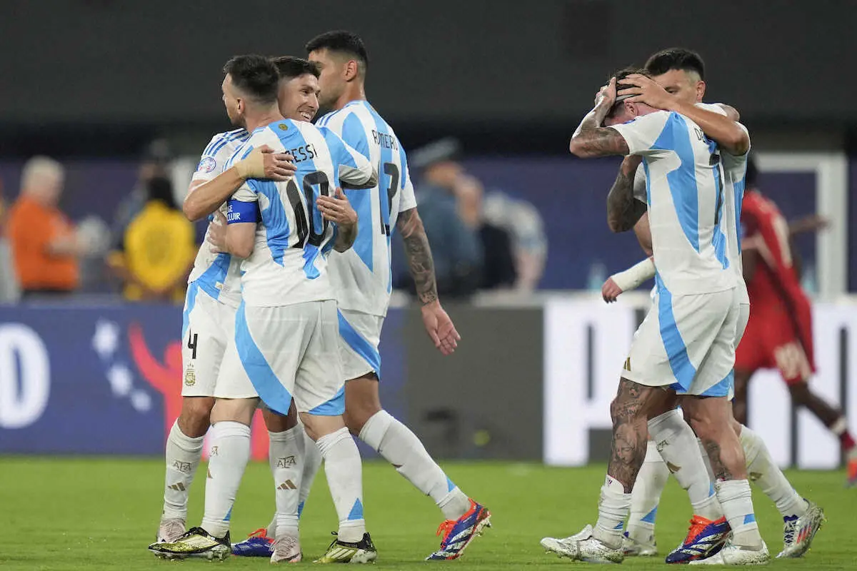 1次リーグ第1戦で2―0で破ったカナダとの再戦に同じスコアで勝利。前半22分にFWアルバレス(マンチェスターC)が先制点を挙げると、後半6分にFWメッシ(マイアミ)が今大会初得点となる追加点を挙げて突き放した。