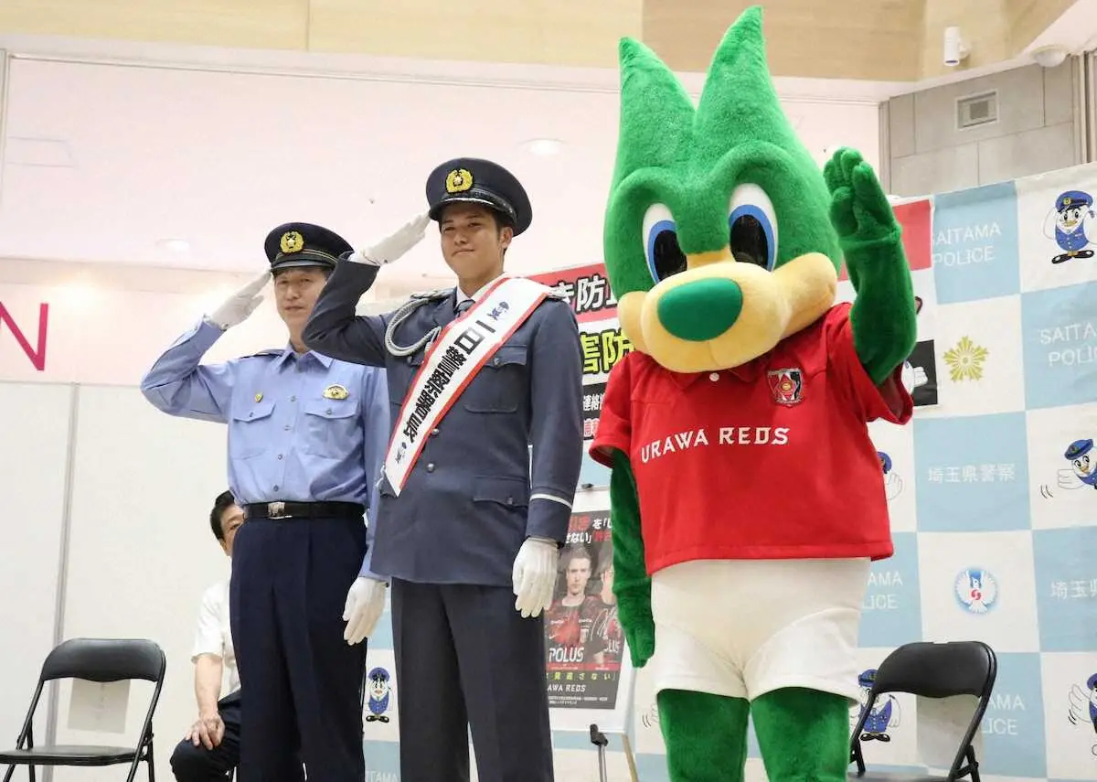 浦和の主将を務めるMF伊藤敦樹が10日、埼玉県警川口署の一日署長を務めた。