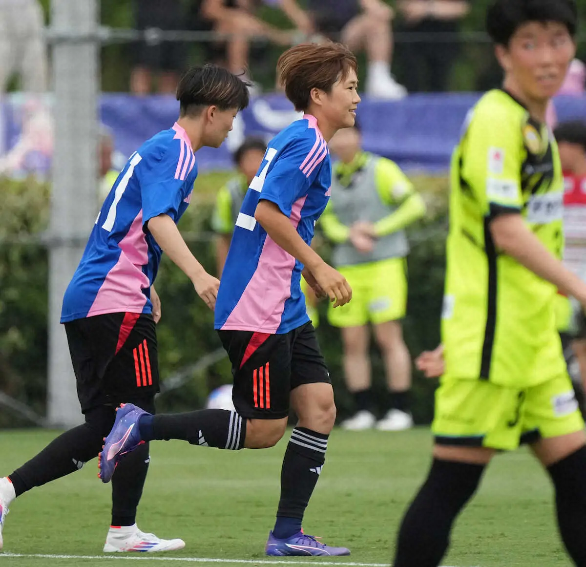 パリ五輪に臨む女子日本代表「なでしこジャパン」は10日、千葉市内でヴィアマテラス宮崎(なでしこリーグ1部)と練習試合(30分×3本)を行い、5―0で快勝した。2本目から出場したFW浜野まいか(20=チェルシー)は同2分にチーム2点目を決めた。