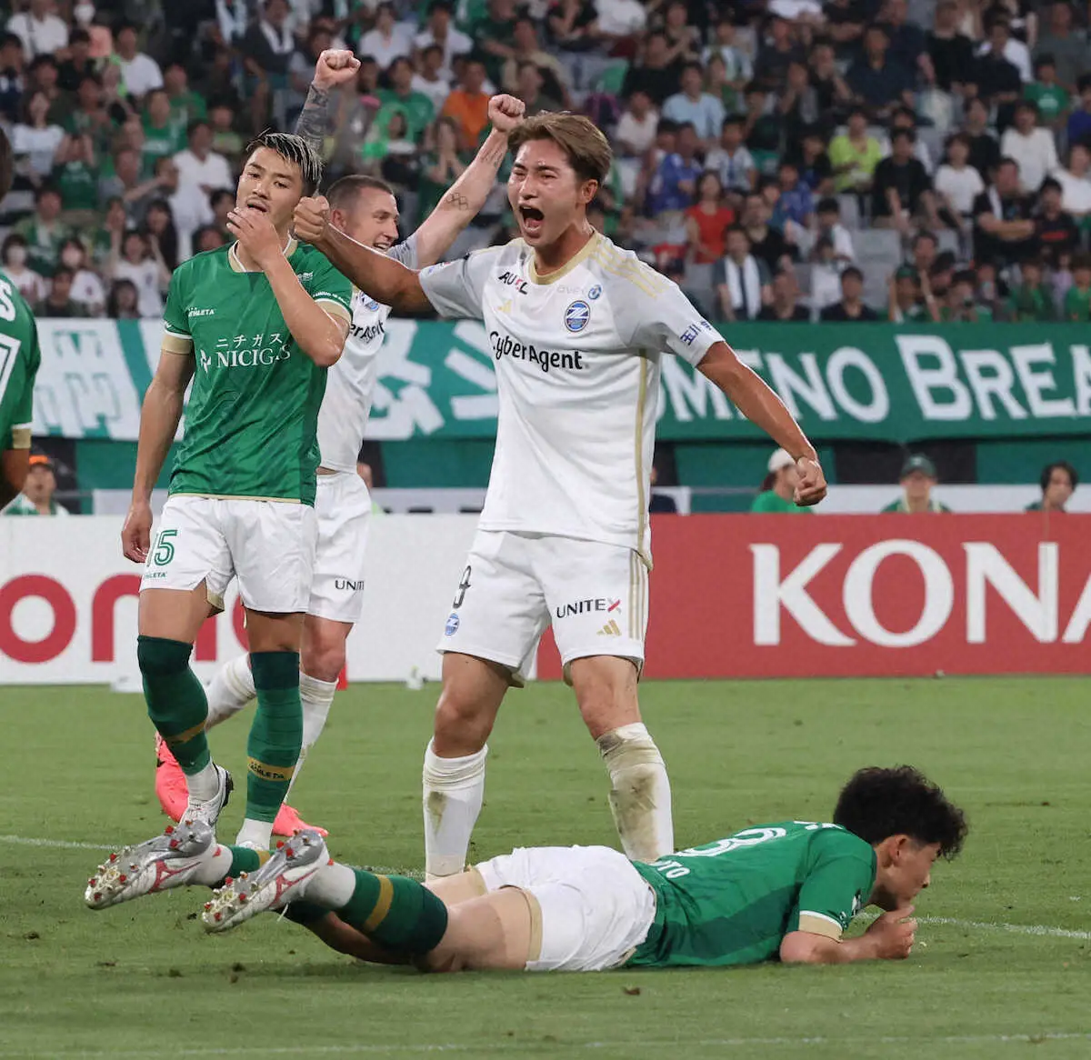 前節の名古屋戦を最後に、パリ五輪代表FW平河悠が海外移籍で離脱。戦力ダウンが懸念された中で前半6分、中央からパスを受けた右サイドバックのDF鈴木準弥がアーリークロス。パリ五輪代表で離脱前ラストゲームとなるFW藤尾翔太が東京VのDF谷口栄斗と競り合い、クロスが谷口の足に当たりゴールへ。5月と全く同じ、藤尾が絡んだオウンゴールで先制点を奪った。
