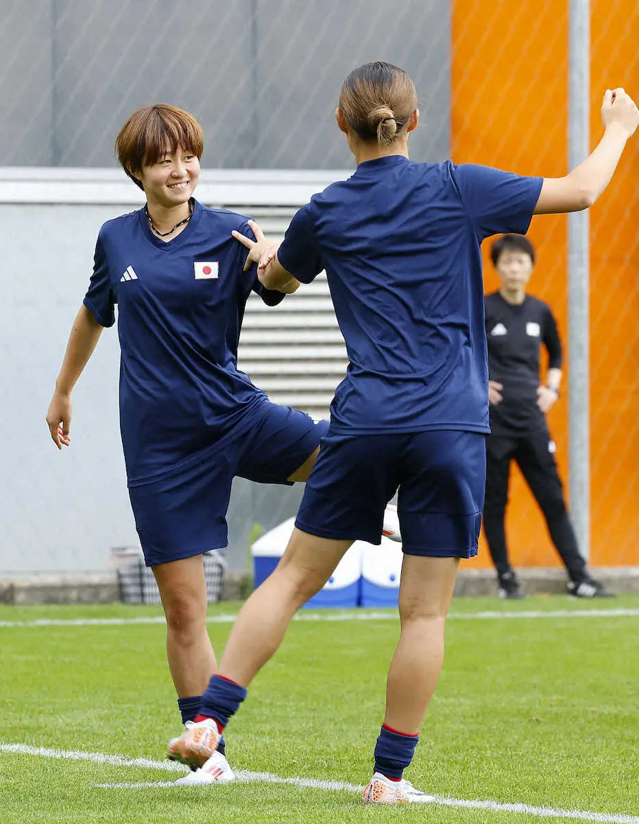 スペイン戦に向け、調整するサッカー女子日本代表・宮沢(左)