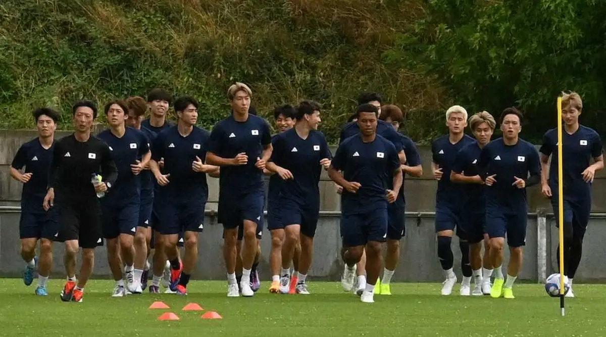 パリ五輪のサッカー男子日本代表は22日、1次リーグD組初戦のパラグアイ戦(24日)に向け、ボルドー市内の練習会場で調整し、冒頭15分を報道陣に公開した。