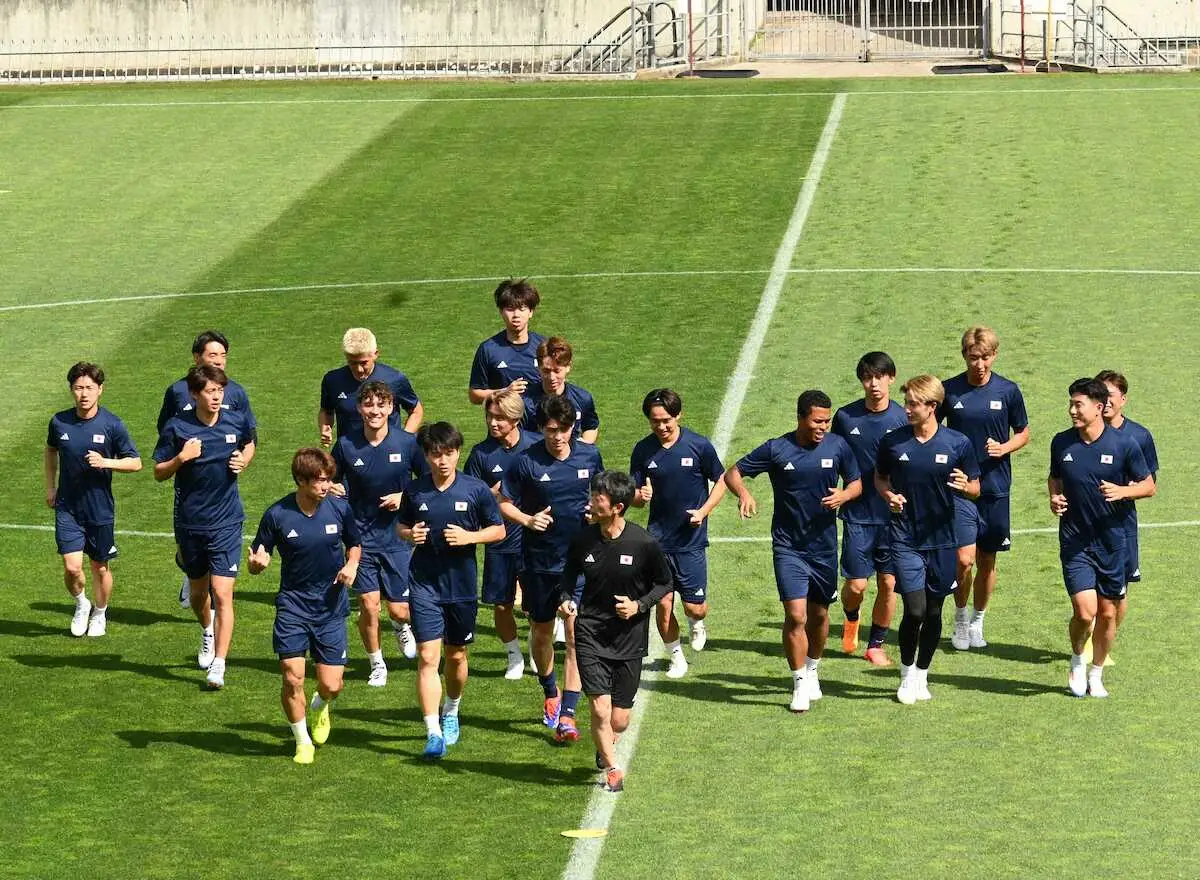 パリ五輪のサッカー男子日本代表は23日、1次リーグD組初戦のパラグアイ戦を前日に控え、ボルドー市内の練習会場で最終調整し、左腓骨(ひこつ)を骨折したとみられるDF半田陸(22=G大阪)を除く21選手が汗を流した。