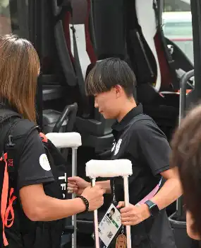 なでしこジャパン、パリからナント入り ブラジル戦ベンチ外の藤野は車いすで移動