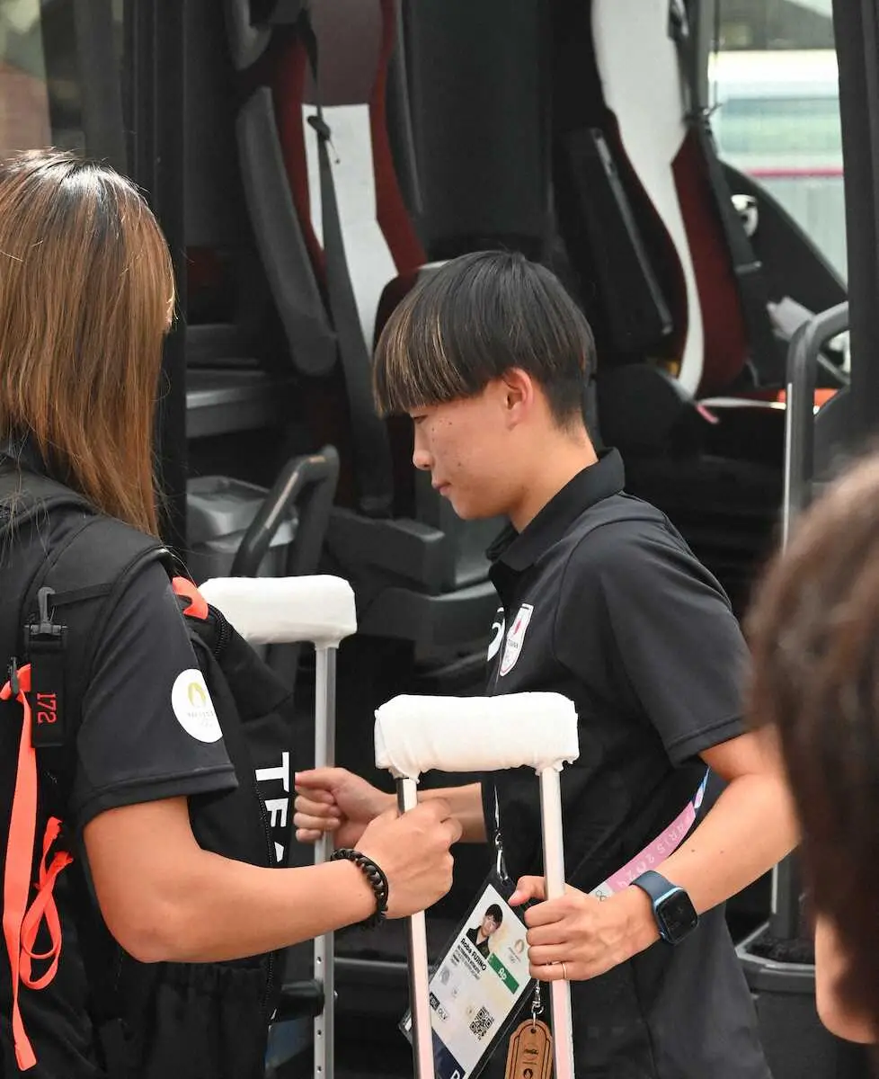 ブラジル戦でベンチ入りから外れ、ナント到着時は車いすに乗っていたMF藤野あおば(20=日テレ東京V)は宿舎で静養。移動時は右足だけサンダルを履き、松葉づえを持っていた。