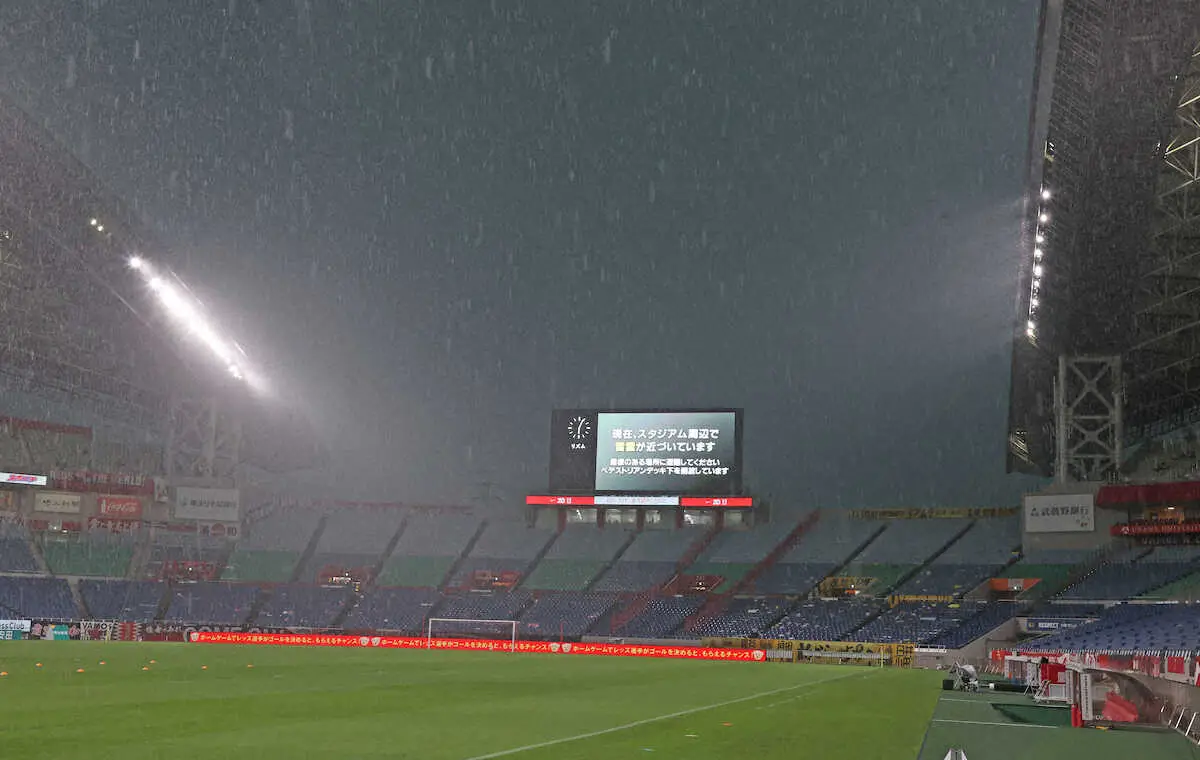 埼玉スタジアムで激しい雷雨に見舞われた。J1では23年6月の神戸―川崎F戦以来、Jリーグでは23年8月の藤枝―群馬戦以来の試合中止となった。