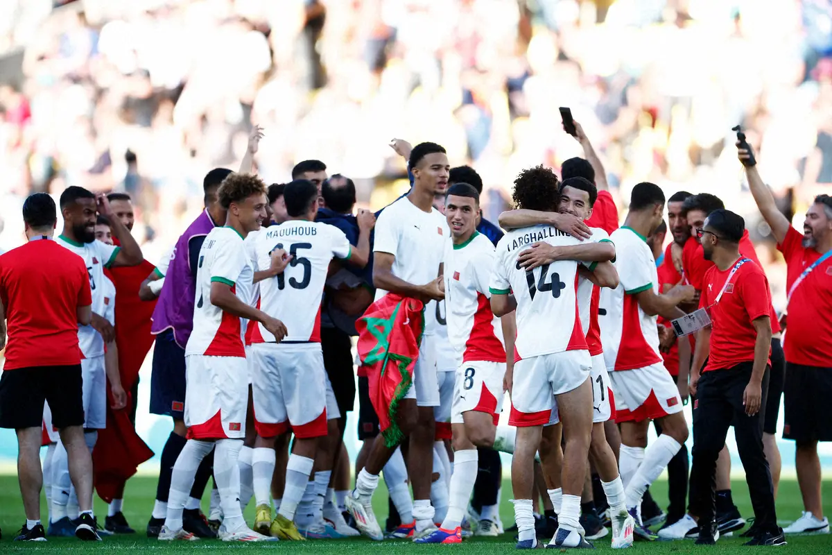 <サッカー男子 エジプト・モロッコ>前半、ゴールを決め喜ぶモロッコ代表ラヒミ(左)と主将のハキミ(ロイター) 【サッカー男子】モロッコ歴史的快挙!6発完勝で初の銅メダル獲得 FWラヒ… ギャラリーで見る この記事のフォト 2024年08月09日の画像一覧 もっと見る 2024年08月09日の画像をもっと見る