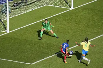 ブラジルは2試合出場停止処分を受けた38歳の“女王”FWマルタが復帰しベンチスタート。試合は前半から激しい攻防となり、開始早々にFWルドミラがシュートを放つなど攻め立てたが無得点のまま前半終了。米国の攻撃もGKロレナの好守など守備陣が奮起し、0―0で後半へ折り返した。