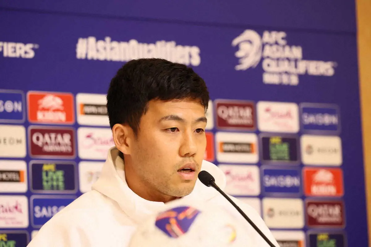 サッカー日本代表は5日に埼玉スタジアムで、26年W杯アジア最終予選の初戦として中国戦に臨む。4日には会場で前日会見が行われ、MF遠藤航主将(31=リバプール)が森保一監督とともに(56)出席した。