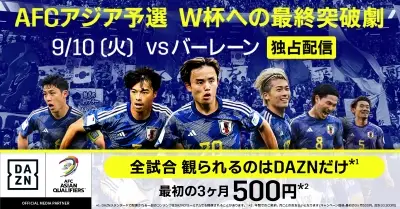 DAZNは今回の「AFCアジア最終予選」に臨む日本代表27選手中23選手が所属チームで活躍する試合を、国内で最も多くご視聴いただける唯一無二のプラットフォーム(DAZN調べ)。DAZNはこれからも「最強の#代表みようぜ」をテーマに日本代表を全力で応援し、日本人選手が国内そして世界で活躍する姿を配信するという。