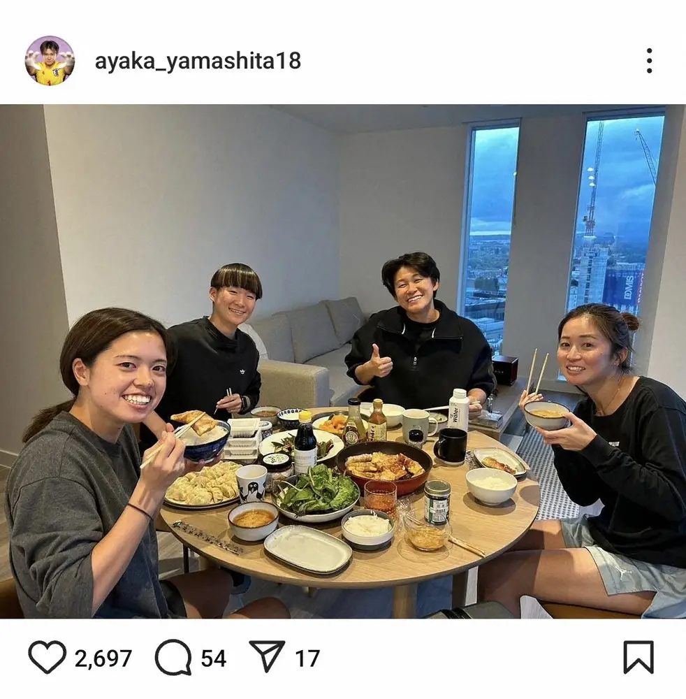 サッカー女子日本代表GK山下杏也加(28=マンチェスターC)が7日までに自身のインスタグラムを更新。同じく日本代表で、マンCのチームメイトらとの食事風景を披露した。