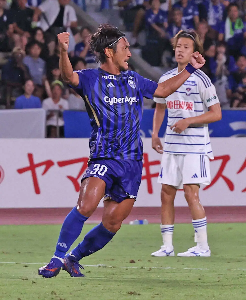 それでも前半41分にMF羅相浩(ナ・サンホ)の縦パスを、中島が振り向きざまに右足でダイレクトでシュート。相手選手の股を抜いてゴール右隅に流し込み、これが反撃開始の合図となった。今季公式戦初得点の中島は40歳2カ月23日でルヴァン杯年長4位、史上4人目となる40代での得点。その4分後にはMF下田北斗が左足で絶妙なループシュートを決め、点差を3に縮めて前半を折り返した。