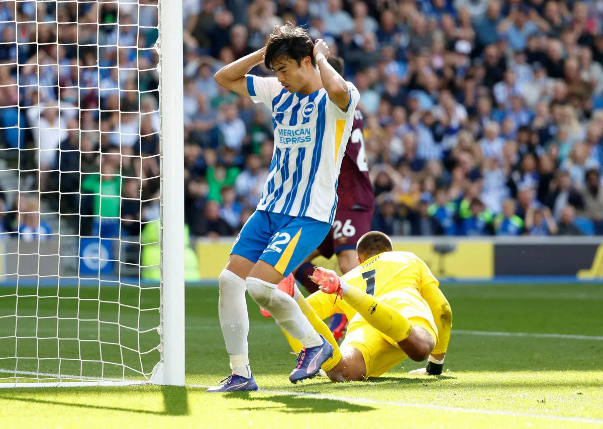 <ブライトン・イプスウィッチ>前半、シュートを止められ頭を抱えるブライトン・三笘(ロイター)