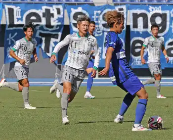 ヘディング練習で軽快な動きを見せる佐藤(右)