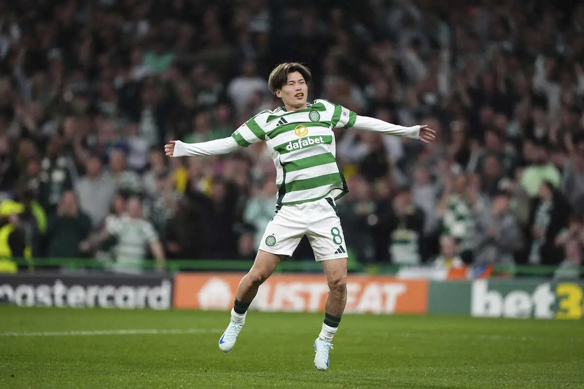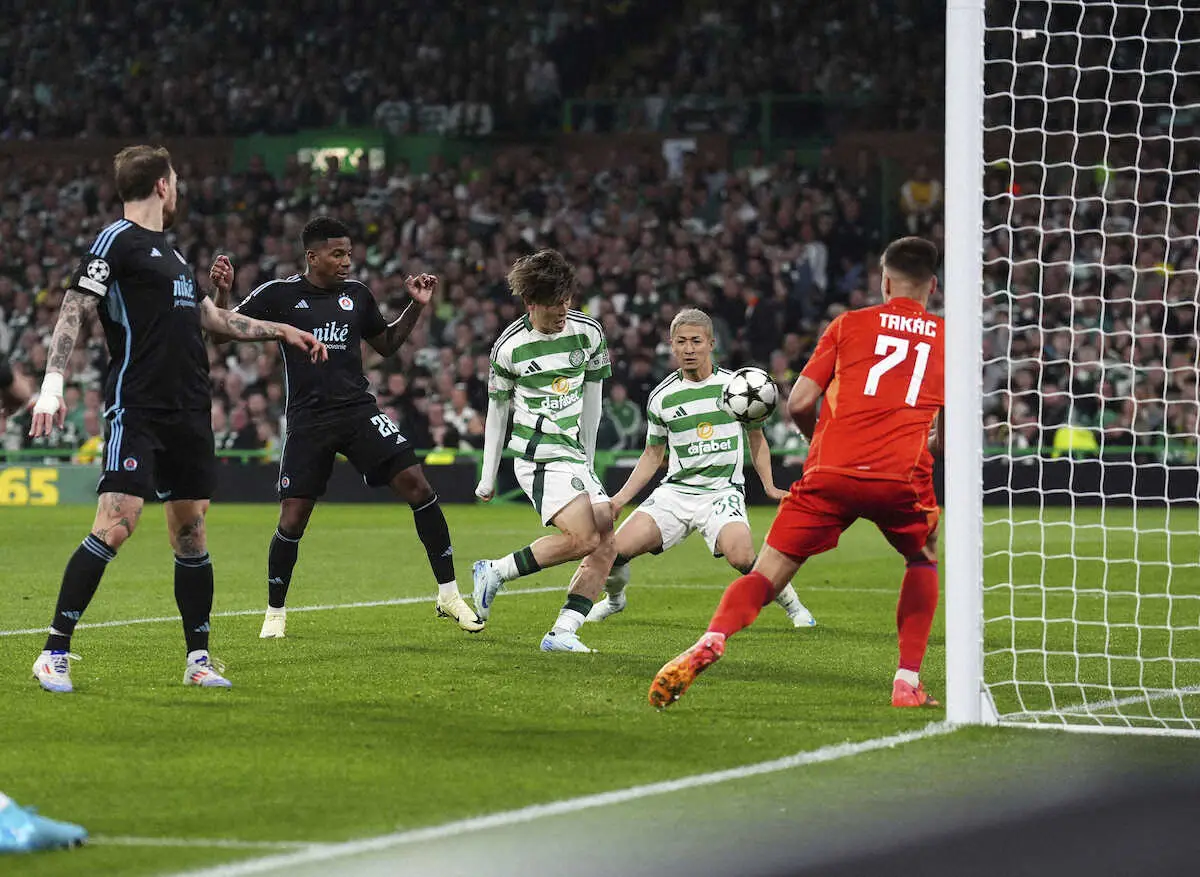 <セルティック・スロバンブラチスラバ>CL初得点を記録したFW前田(右)を祝福するセルティックFW古橋(AP) Photo by AP セルティック古橋&前田が決めた!日本人初CLアベック弾の快挙 クラブ史上… ギャラリーで見る この記事のフォト 2024年09月19日の画像一覧 もっと見る 2024年09月19日の画像をもっと見る