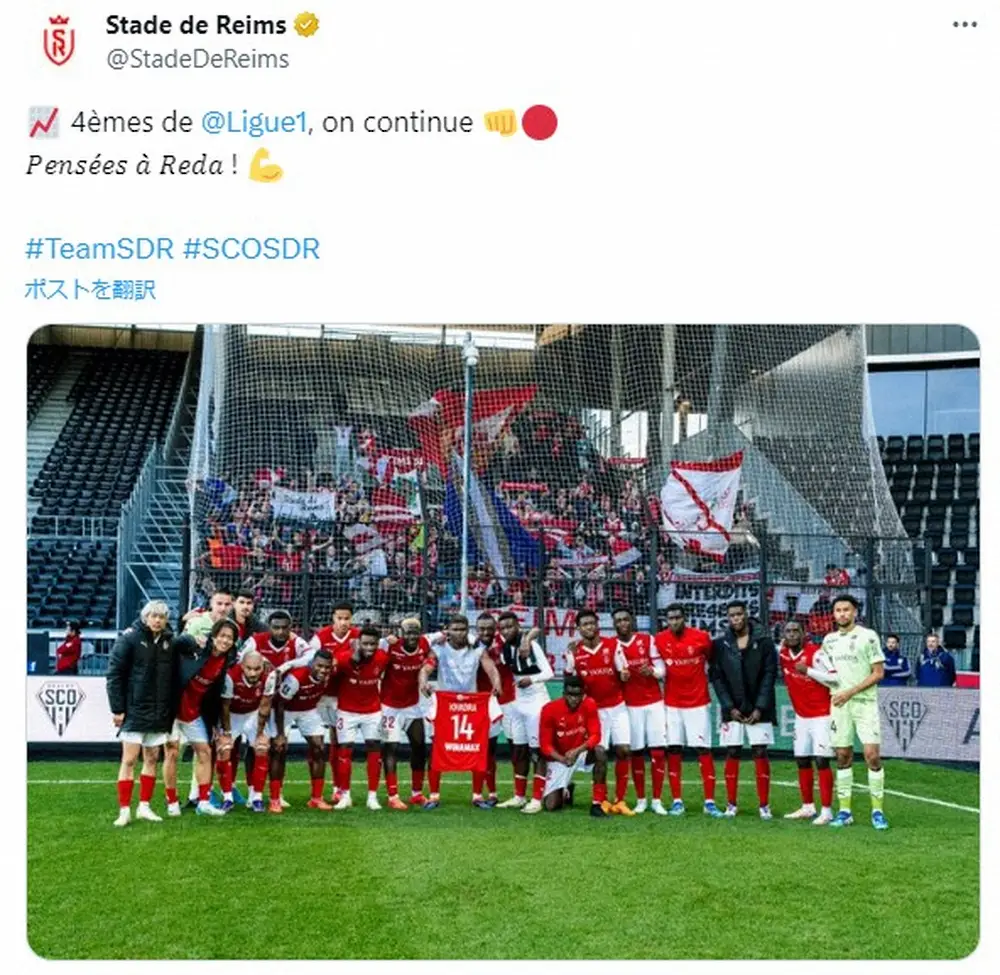 試合後、クラブ公式Xでは前節パリSG戦(△1―1)で負傷交代し、今季絶望となったドイツ人MFレダ・カドラのユニホームを掲げイレブン全員で記念撮影した写真を公開。これから手術を控えるカドラに向けエールを送った様子にネットからは「感動で震える」「よい光景だ」「カドラと共に」「カドラも今日の勝利を喜んでいるはず」「カドラも一緒に勝利のお祝いだ」「一日でも早く治りますように」と反響を呼んだ。
