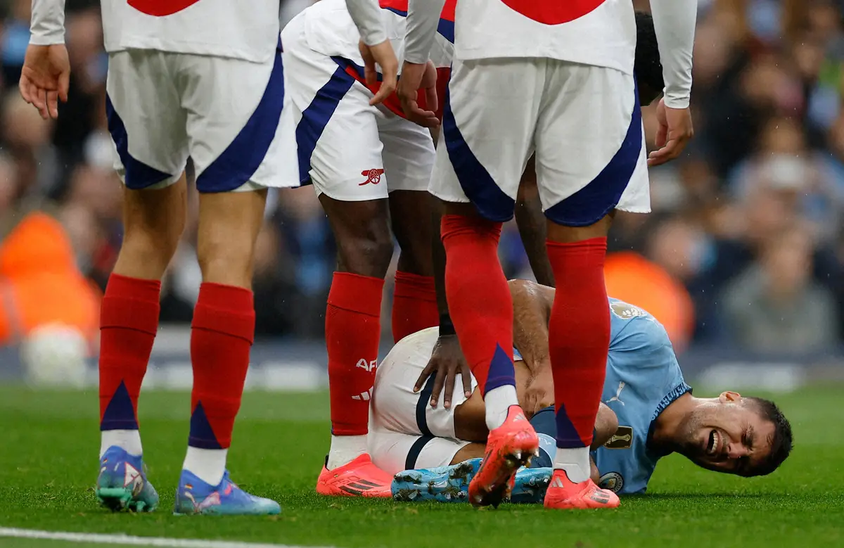 アーセナル戦で負傷交代したマンチェスターCのMFロドリ(中央)(ロイター)