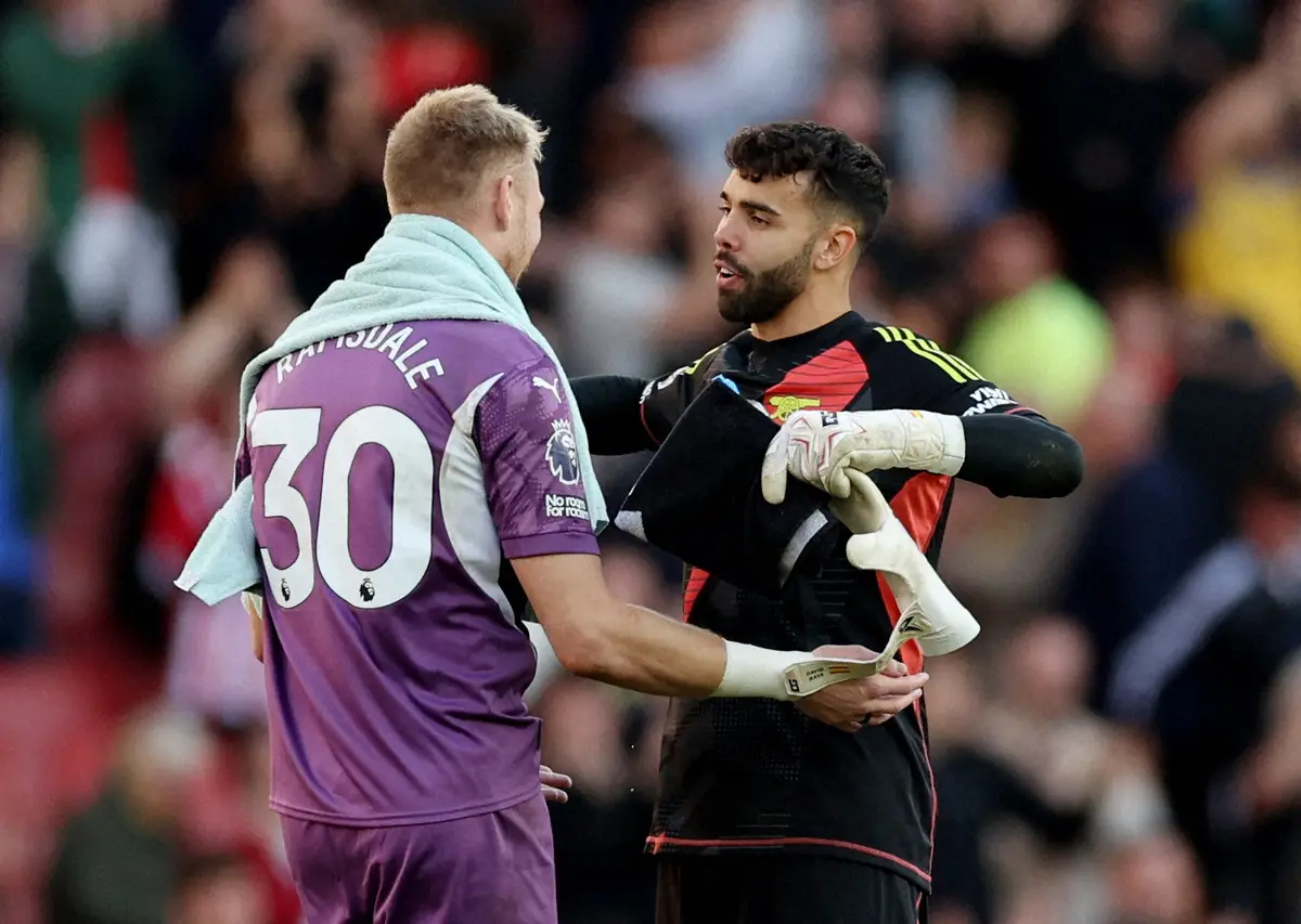<アーセナル・サウサンプトン>試合後、古巣アーセナルサポーターからの声援に応えるサウサンプトンGKラムズデール(ロイター) アーセナル指揮官 冨安の戦列復帰を喜ぶ「素晴らしい」 守護神同士の抱… ギャラリーで見る この記事のフォト 2024年10月06日の画像一覧 もっと見る 2024年10月06日の画像をもっと見る