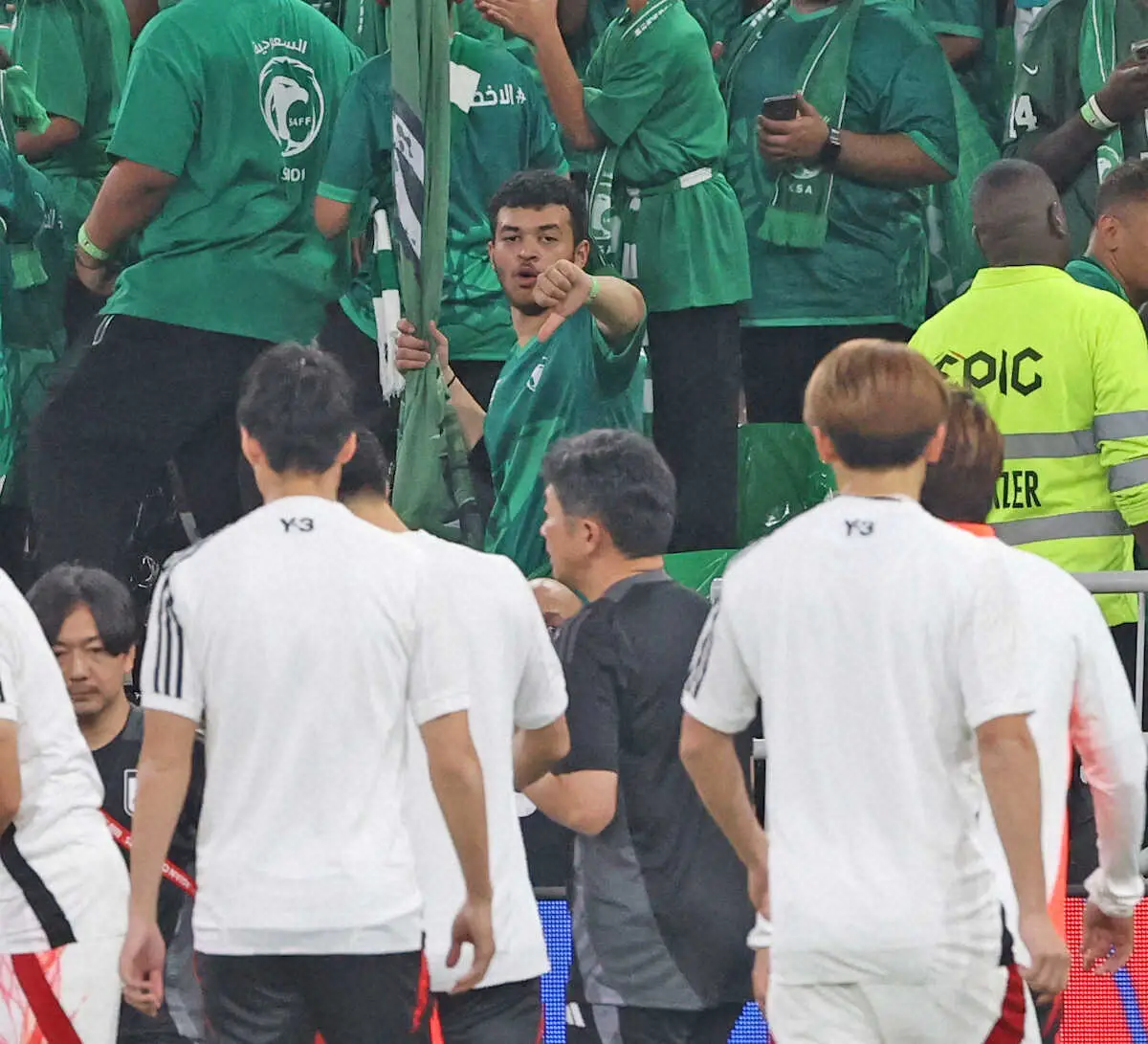 日本が2-0とリードを広げると、サウジアラビアの大サポーターが一斉に席を立ち始め、帰宅の途に就いた。この日の観客は5万6283人。日本のサポーターは100人超で、大多数はサウジアラビアのサポーターだったが、後半36分以降は空席が目立つようになり、試合終了時には席はガラガラだった。
