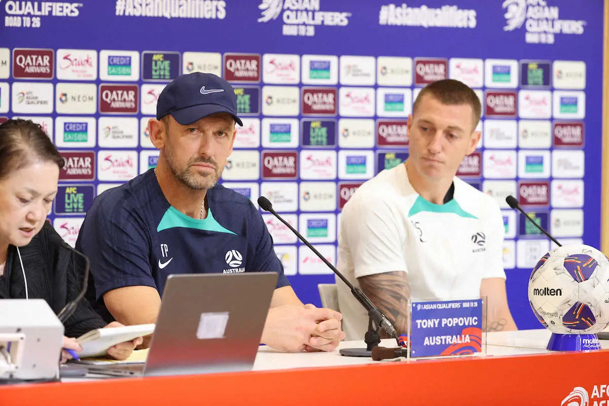 サッカー日本代表は15日に埼玉スタジアムでW杯アジア最終予選第4戦オーストラリア戦に臨む。14日は会場で公式会見が行われ、オーストラリア代表はトニー・ポポビッチ監督(51)、FWミッチェル・デューク(33)が出席した。