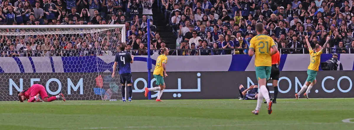 日本がオウンゴールで同点に追いつく(撮影・西海健太郎) Photo by スポニチ 「オウンゴールマッチだ」 豪州サポ ネットで盛り上がり ギャラリーで見る この記事のフォト 2024年10月15日の画像一覧 もっと見る 2024年10月15日の画像をもっと見る