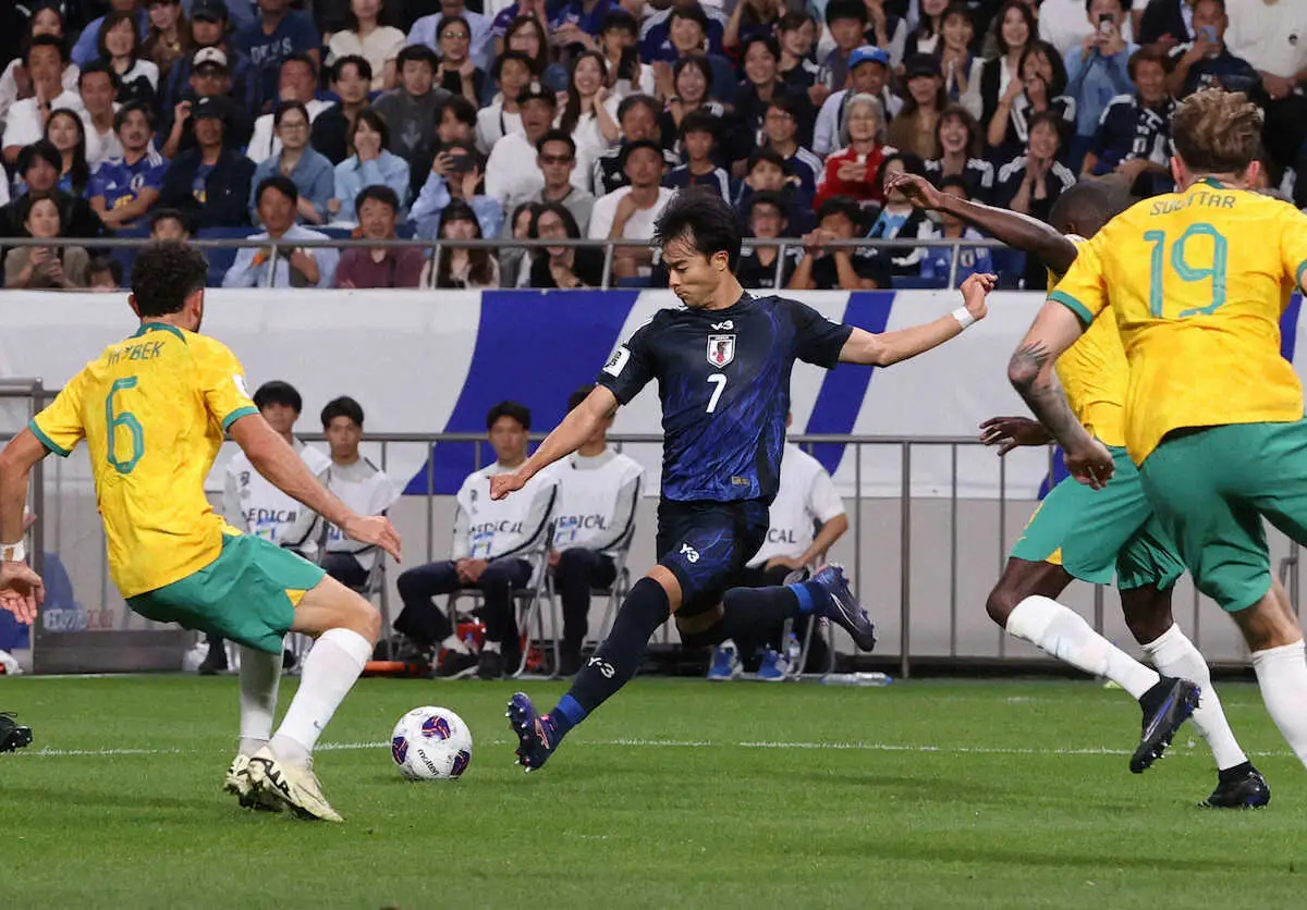【Data Stadium】 日本は15日の26年W杯北中米大会アジア最終予選でオーストラリアに1―1で引き分けた。相手は5バック気味の布陣でゴール前を固め、割り切った守備で日本の攻撃を封じた。日本のこぼれ球奪取率は森保ジャパン過去最高の67・2%。相手はボール奪取にこだわらず、はね返すことに徹した。