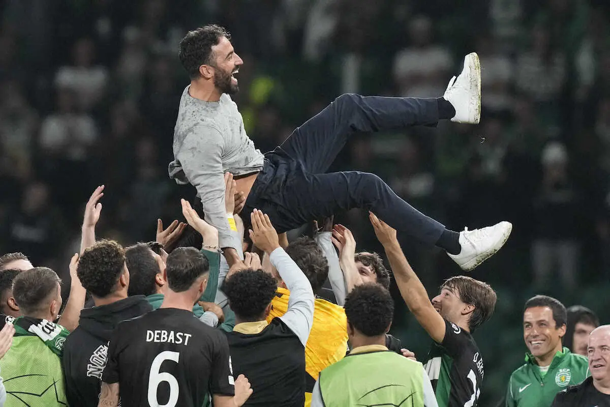 試合後は先日、マンチェスターU新指揮官就任が発表された現スポルティングのアモリム監督が本拠最終戦とあってイレブンから胴上げされる感動的な場面も。試合前には本拠サポーターから「ありがとう」という感謝のメッセージが入った大きな横断幕が掲げられるなど、シーズン途中での退任ながら温かい声援や拍手が送られた。