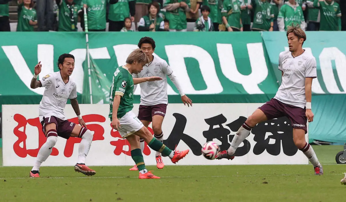 首位・神戸と対戦し、東京Vがアディショナルタイムに相手のO・Gで追いつき、引き分けた。前半7分にCKから先制されたが、その後はリズムをつかみ、好機を作ったが得点はできなかった。ようやく後半のアディショナルタイムに入って、後半から出場のMF山見大登(25)が、左サイドからクロスをあげると相手のO・Gを誘った。城福監督は「勝ち点1はきょうの手応えから逆算すると悔しい。アウェーの時はもう一度試合したら勝てるかどうか。きょうはもう一度試合をしたら、勝ち点3を取れる。成長感じた」と、振り返った。