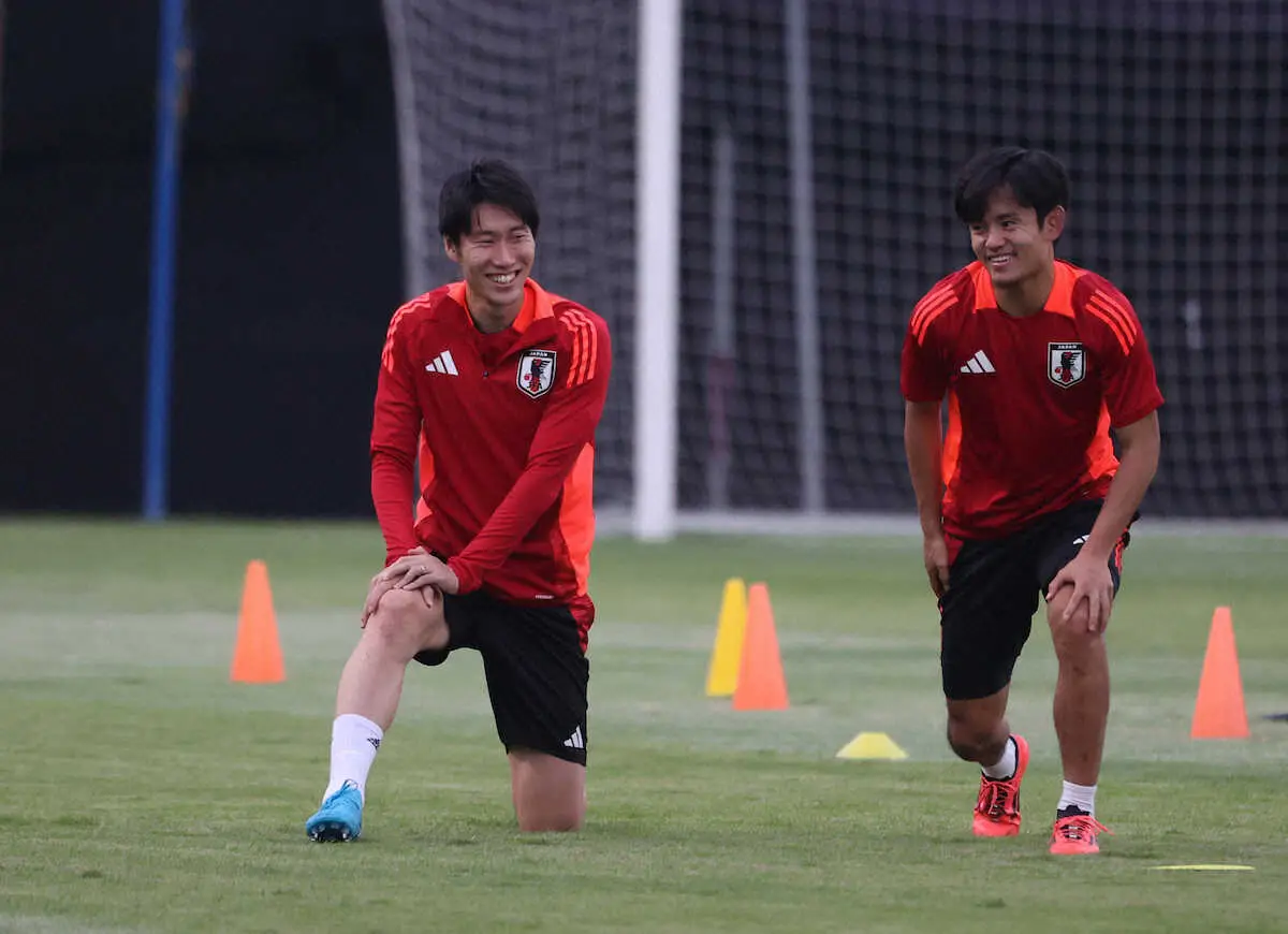 <日本代表練習>ボール回しをする(左から)伊東、南野、旗手(撮影・小海途 良幹) Photo by スポニチ サッカー日本代表、インドネシア戦へ全体練習 前日別メニュー調整の久保… ギャラリーで見る この記事のフォト 2024年11月13日の画像一覧 もっと見る 2024年11月13日の画像をもっと見る