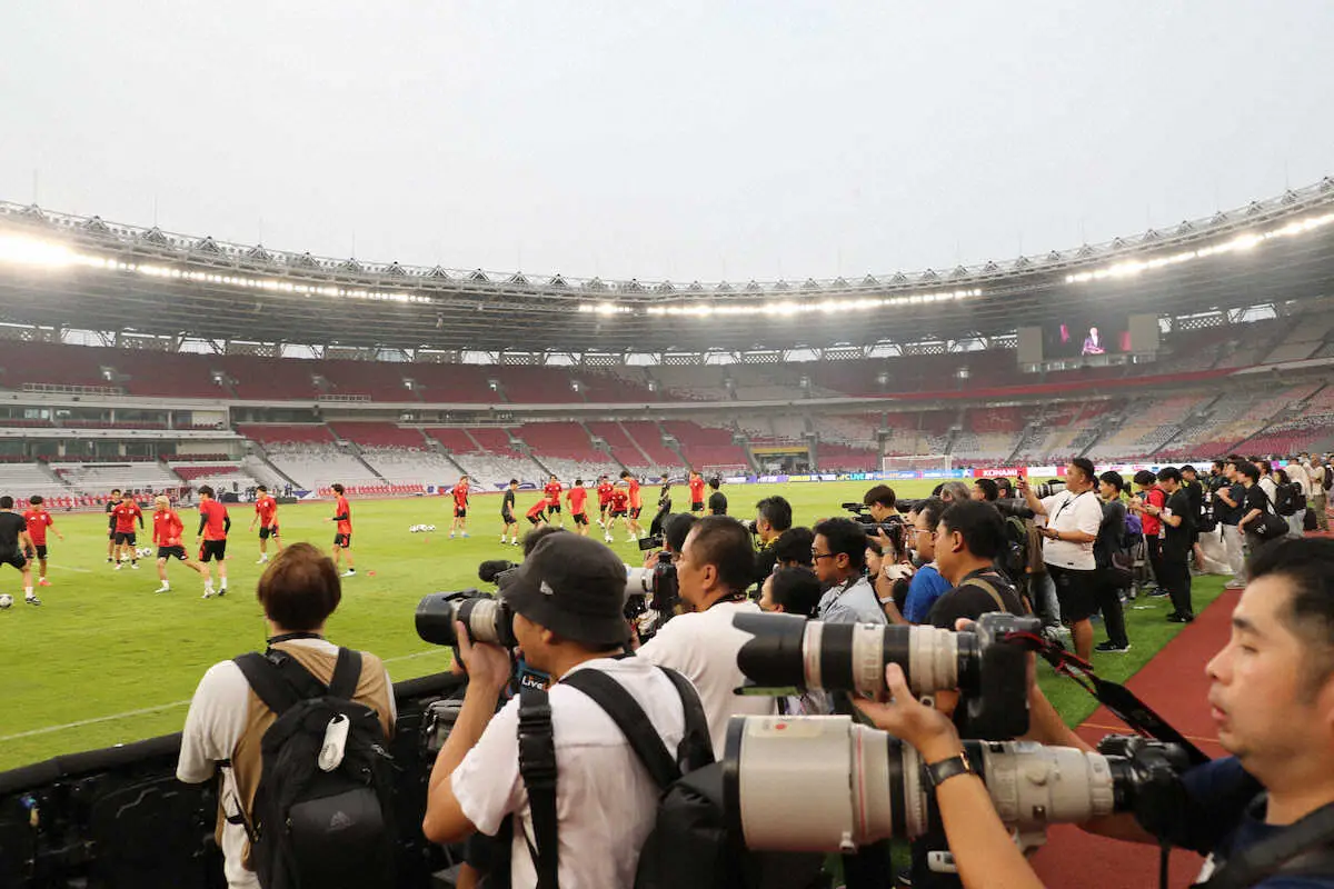 日本代表は14日、翌日に迫った26年W杯アジア最終予選第5戦のインドネシア戦(ジャカルタ)が行われる「ゲロラ・ブン・カルノ・スタジアム」で公式練習を行った。