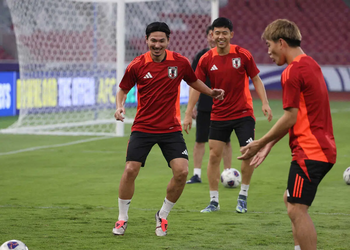 日本代表は14日、翌日に迫った26年W杯アジア最終予選第5戦のインドネシア戦(ジャカルタ)が行われる「ゲロラ・ブン・カルノ・スタジアム」で公式練習を行った。インドネシア国内のサッカー熱は高く、この日も地元メディアが100人近く集結し、テレビカメラも5~6台。公開された冒頭15分では芝生の感触やボールの滑りを確認しながらボール回し、ロングキック、ランニングなどで汗を流した。