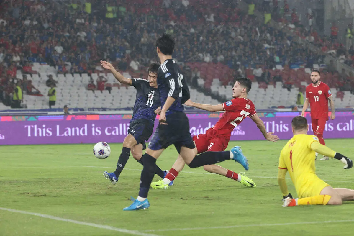 サッカー日本代表(FIFAランク15位)は15日、26年W杯北中米大会アジア最終予選でインドネシア(同130位)と対戦。前半35分、同予選初スタメンのFW小川航基(NECナイメヘン)が押し込むような形で先制。同40分にはMF南野拓実(モナコ)の左ミドルで追加点を奪い、前半を2-0で折り返した。