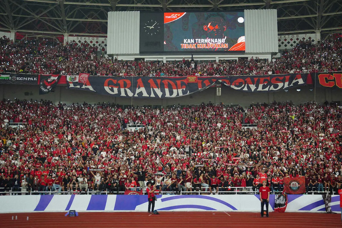 《会場周辺はカオス》試合会場のゲロラ・ブン・カルノ・スタジアム周辺は試合開始4時間前から大混雑となった。7万8000人が収容で前売り入場券は完売。道路は自動車とバイクで埋め尽くされて渋滞した。試合前には雷鳴がとどろく中でもホームカラーである赤いユニホームを身にまとったサポーターの「インドネシア!」大合唱。試合前からスタジアム全体が興奮状態だった。