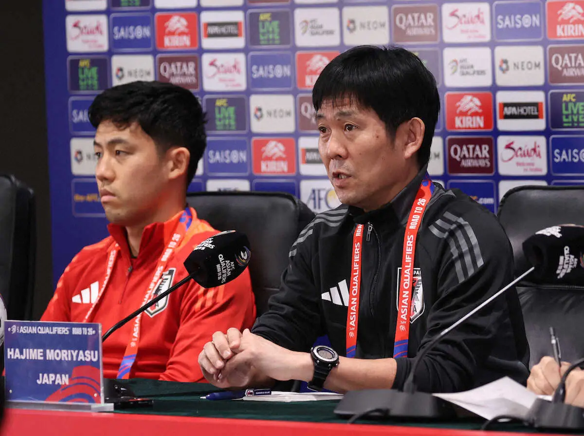 サッカー日本代表は19日に中国・アモイで中国との26年W杯北中米大会アジア最終予選第6戦に臨む。18日には試合会場「アモイ白鷺体育場」で前日会見が行われ、森保一監督(56)とMF遠藤航(31=リバプール)が出席した。