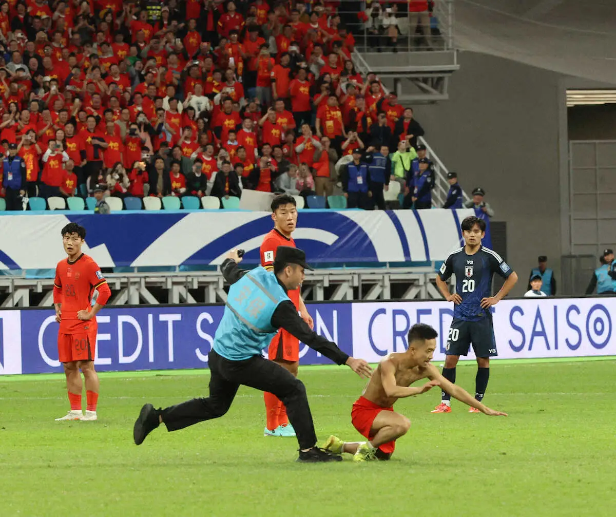日本代表(FIFAランク15位)は19日、アウェーで中国代表(同92位)と対戦。前半33分頃にピッチに乱入者が入り込み、試合が止まる場面があった。