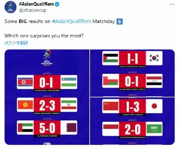 【W杯アジア最終予選】日本の同組2位争い 史上まれにみる大混戦がネットで反響「面白すぎる」