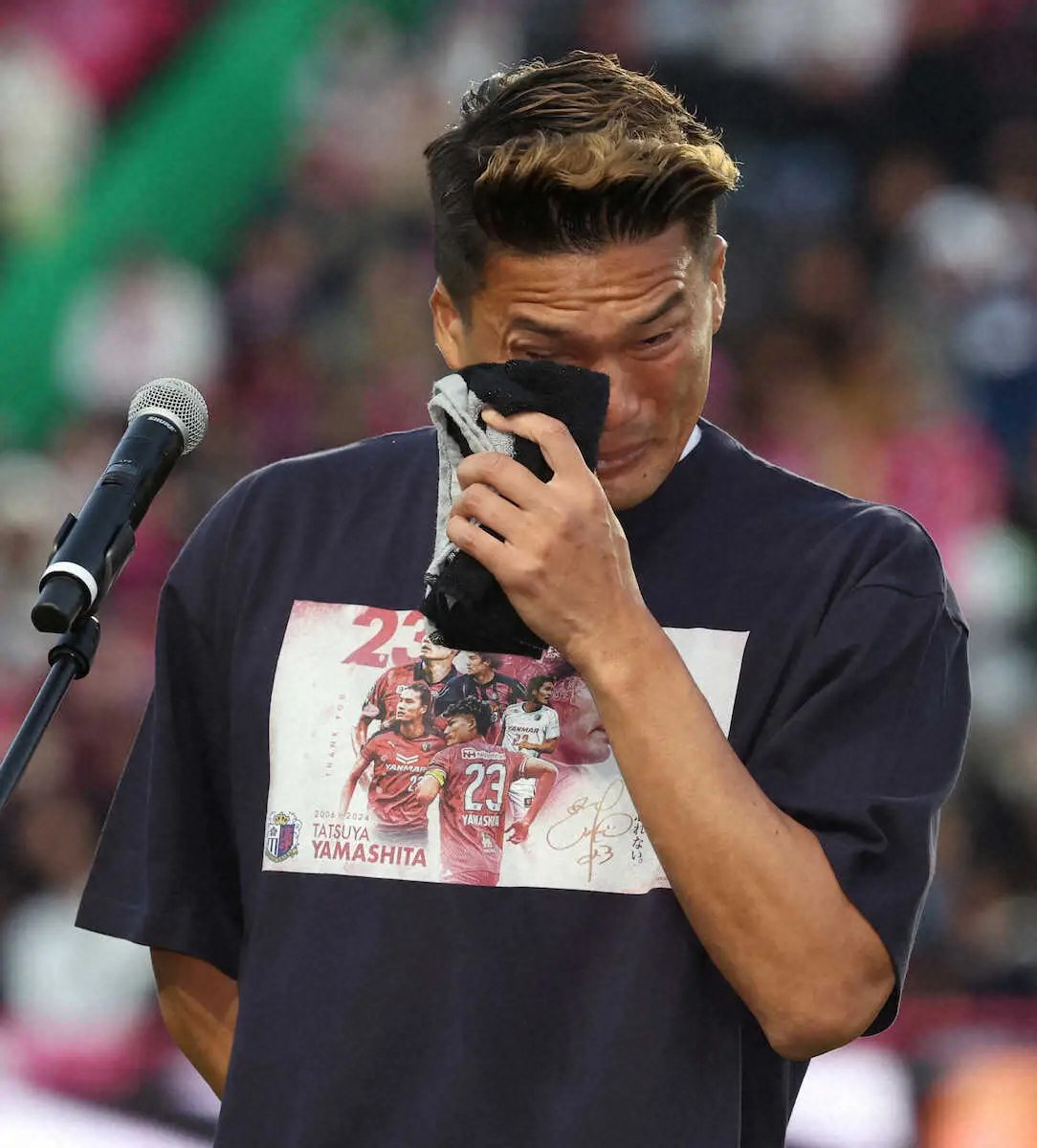 サポーターも熱く見送った。試合前の選手入場の時はゴール裏応援席に巨大な「23」が出現。「僕みたいな選手に…。あれは感動でしたね」と自らの背番号をオマージュしたサプライズを受け止めた。試合後のセレモニーでは「漢 山下達也 貫いたセレッソ愛 闘い続けた23の背中 最後までプロフェッショナルな姿を見せてくれたことを俺たちも忘れない ありがとう これからも共に」と長文の横断幕が掲げられた。